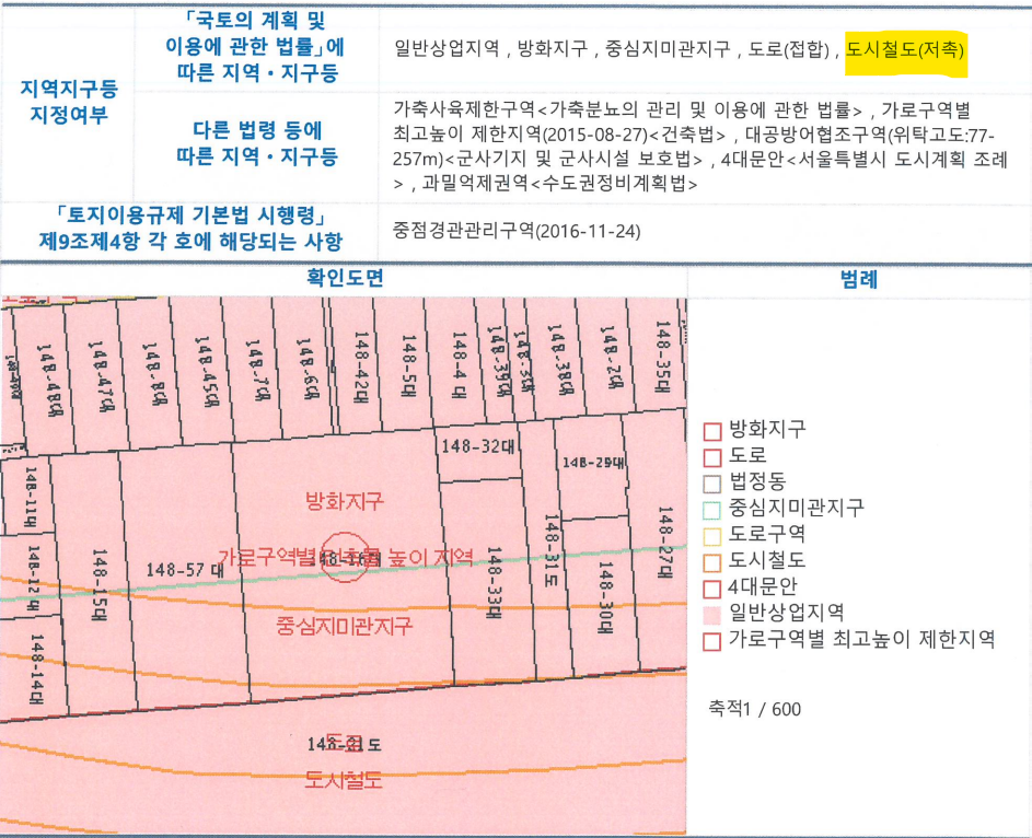 토지이용계획 확인원을 살펴보면 대지의 도로들과 접한 상대에 따라 <접함> 또는 <저촉>이라는 문구를 확인할 수 있습니다.
