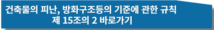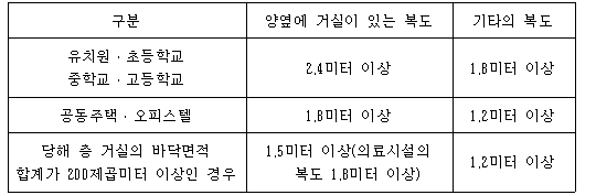 | 복도의 너비 및 설치기준 건축물의 피난, 방화구조등의 기준에 관한 규칙 제 15조의 2 |