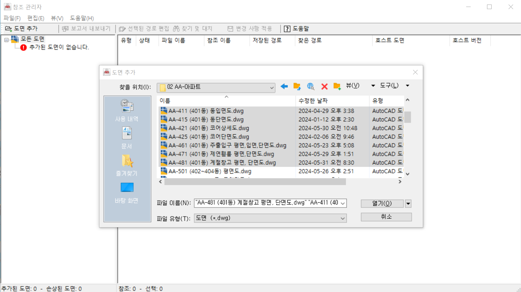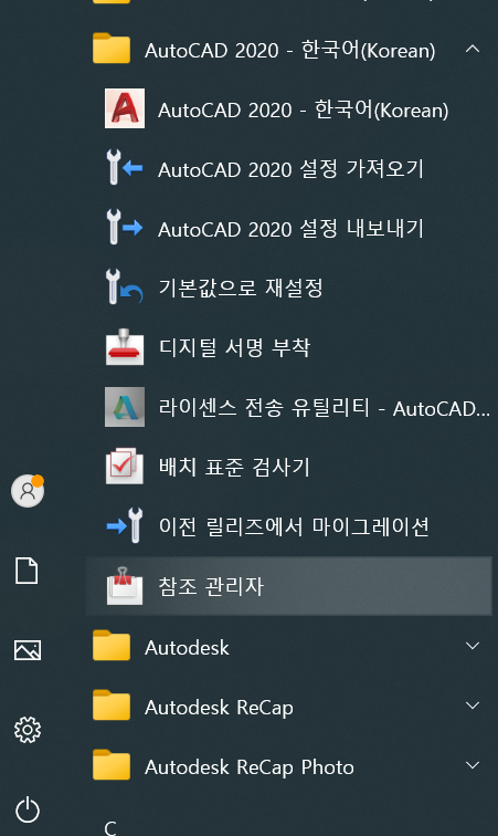 1. 윈도우 [시작] 버튼/AutoCAD/참조관리자 클릭