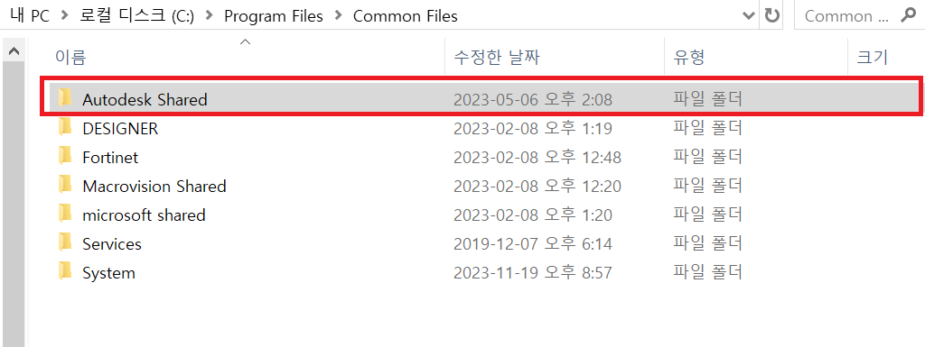내컴퓨터에 남아 있는파일 삭제하기 - C:\Program Files\Common Files\Autodesk Shared