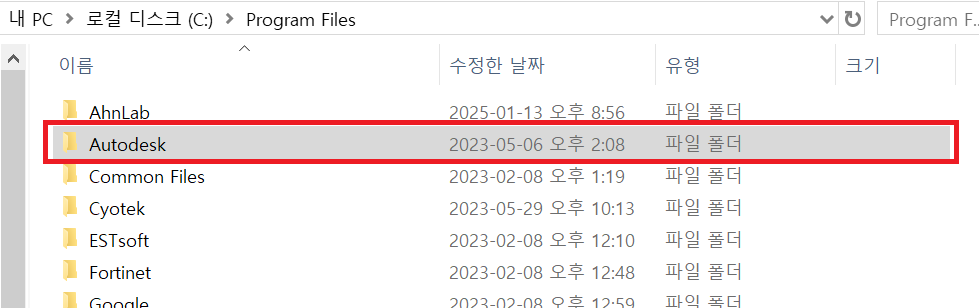 내컴퓨터에 남아 있는파일 삭제하기 - C:\Program Files\Autodesk